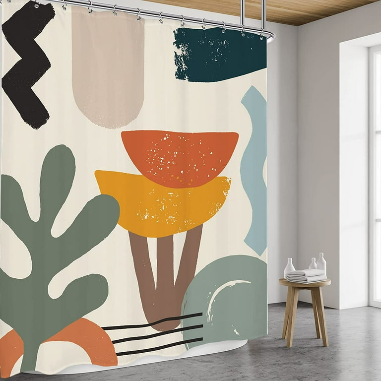 Sonernt Modern Abstract Shower Curtain 72wx71h Inch Geometric Minimalist Aesthetic Contemporary Mid Century Plant Tree Curve Unique 12 Pack Plastic Hooks Fabric Waterproof Home Bathtub Decor Walmart Com