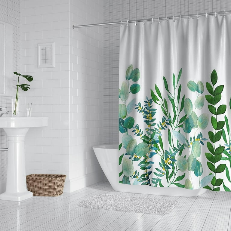 Botanical Stall Small Shower Curtain Green Leaf Watercolor Floral Plant Pattern Decorative Bath Curtain Waterproof Fabric Bathroom Curtain With Hooks 72 X 72 Eucalyptus Leaf Walmart Com